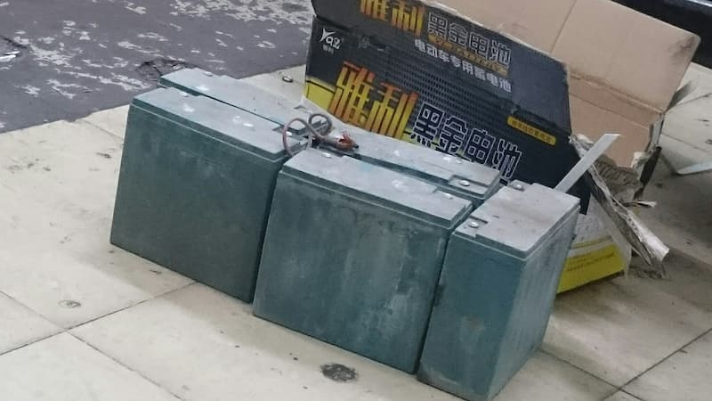( Một bộ Ắc quy xe máy điện đã hết tuổi thọ được tháo ra để thay thế )