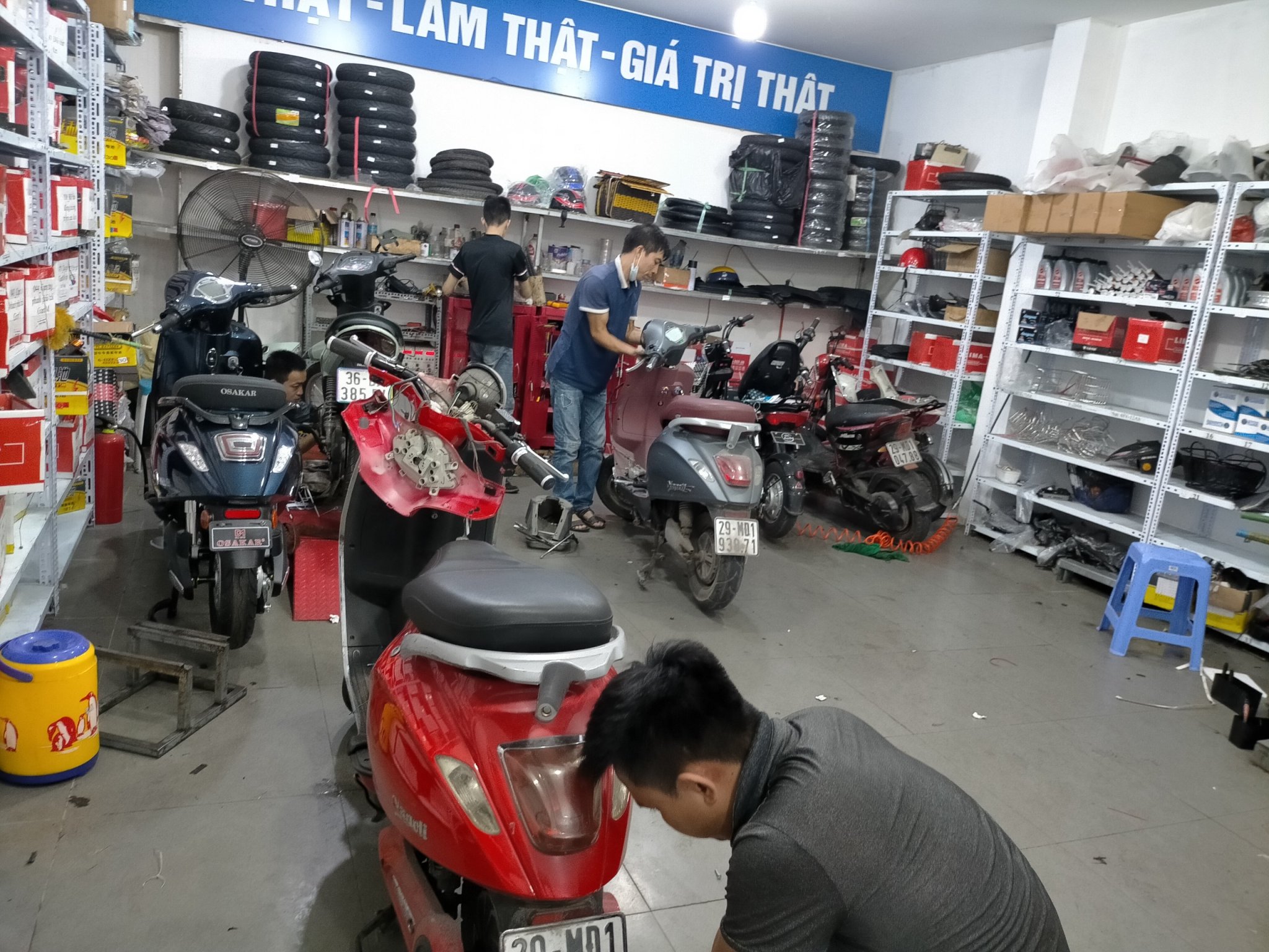Ảnh kỹ thuật đang bảo dưỡng xe cho khách- Xe Điện Lan Anh