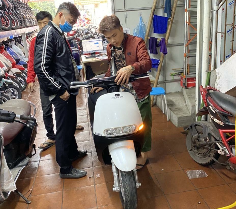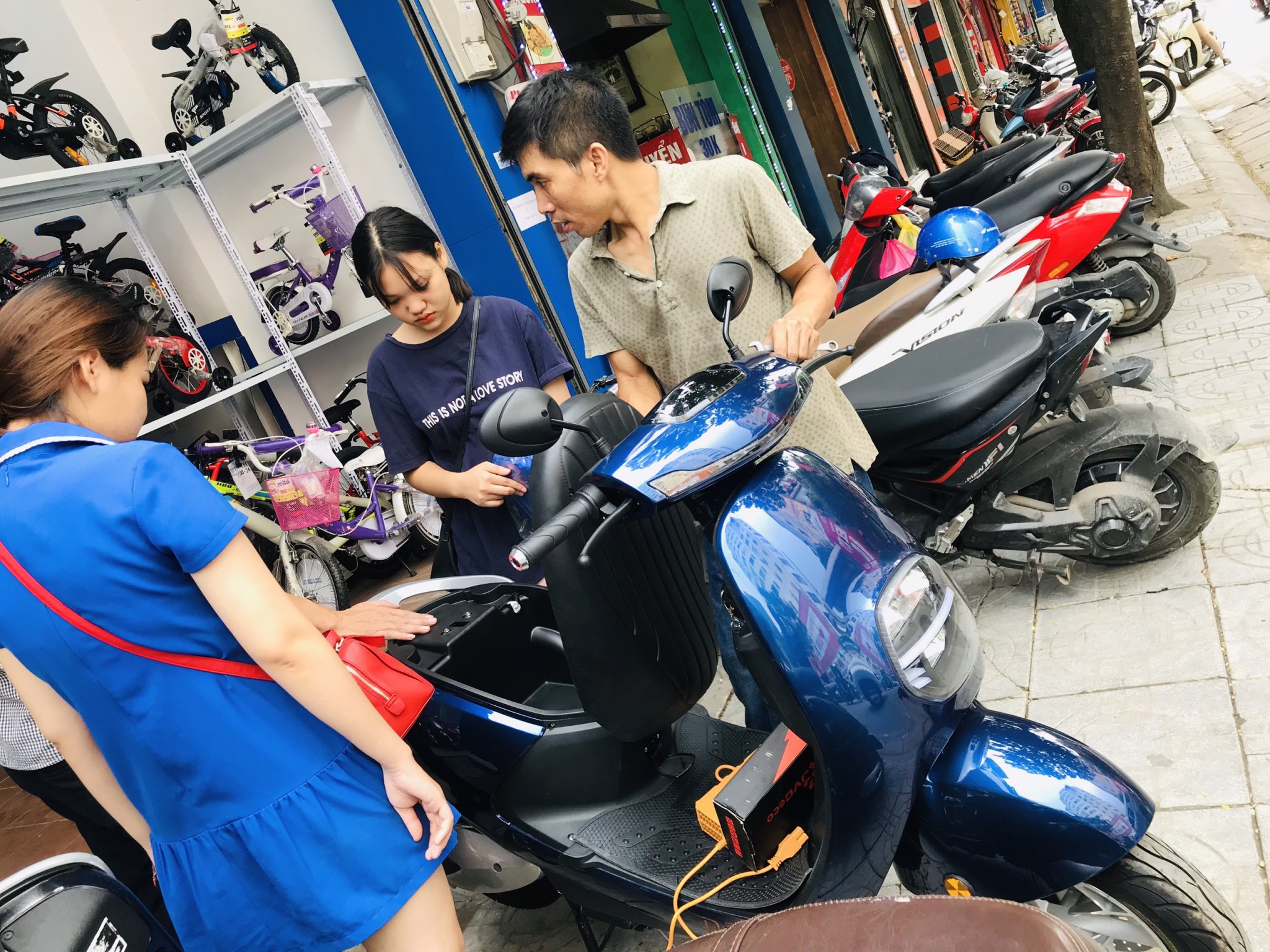 ( Ảnh hướng dẫn khách hàng đi thử xe máy điện - Xe điện Lan Anh )