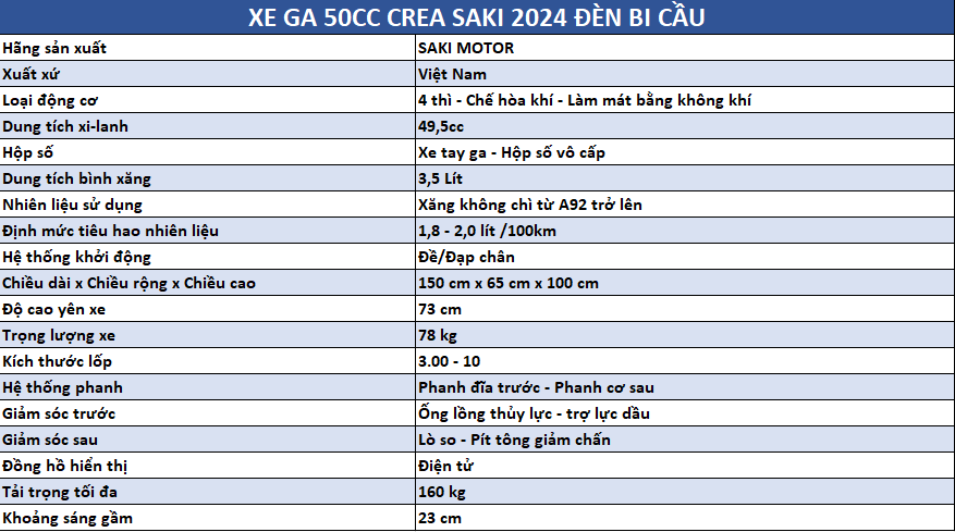 Đừng bỏ lỡ cơ hội sở hữu chiếc Xe Máy 50cc Crea Saki – lựa chọn hoàn hảo cho cuộc sống năng động và hiện đại.