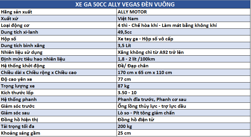 Đừng bỏ lỡ cơ hội sở hữu chiếc Xe ga Ally Vegas 50cc – lựa chọn hoàn hảo cho cuộc sống năng động và hiện đại.