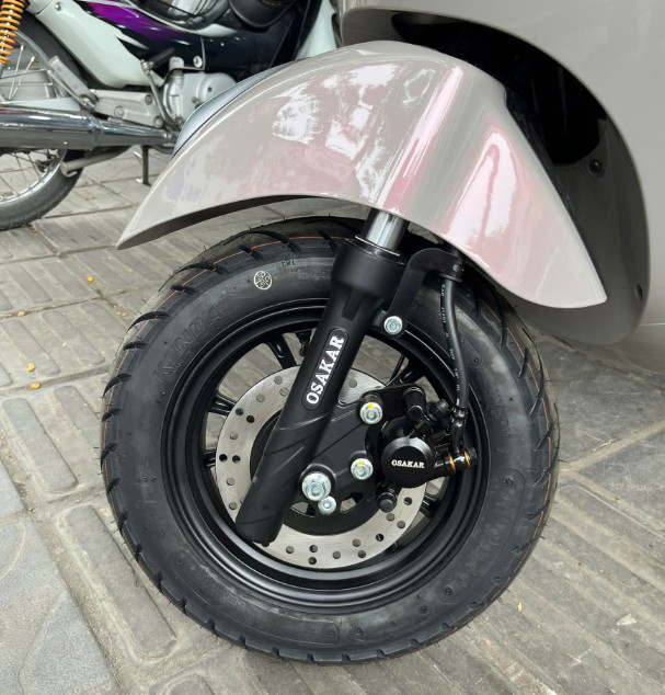 Xe được trang bị lốp không săm, bám đường tốt và đảm bảo an toàn khi cua gấp hoặc đi qua đoạn đường trơn trượt. Kết hợp cùng vành đúc chắc chắn và hệ thống phanh cơ hoặc phanh đĩa (tùy phiên bản), xe vận hành ổn định và an toàn. Giảm xóc êm ái, mang lại cảm giác thoải mái khi di chuyển qua các địa hình không bằng phẳng.