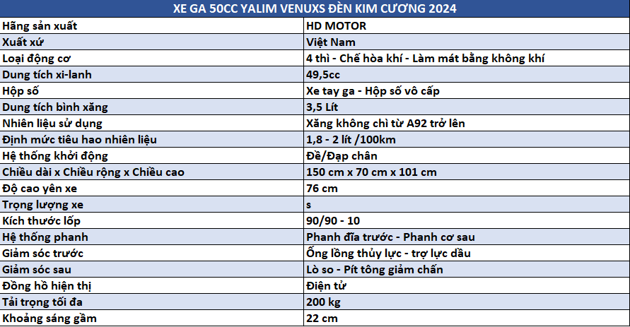 Đừng bỏ lỡ cơ hội sở hữu chiếc Xe ga Yalim 50cc Venuxs đèn kim cương – lựa chọn hoàn hảo cho cuộc sống năng động và hiện đại.