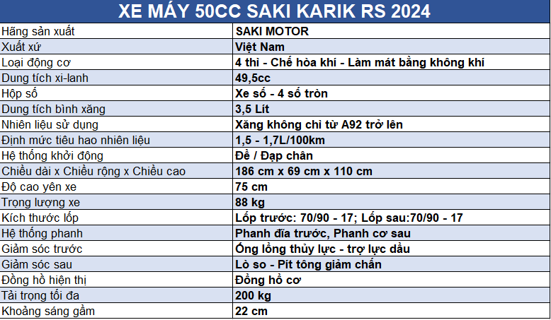 Karik 50cc là chiếc xe lý tưởng cho những bạn nam sinh muốn khẳng định phong cách riêng, đồng thời tìm kiếm một phương tiện di chuyển an toàn, tiện lợi và tiết kiệm. Với thiết kế mạnh mẽ, động cơ hiệu quả và các tính năng an toàn, Karik giúp bạn tự tin di chuyển trong mọi điều kiện và hoàn cảnh.