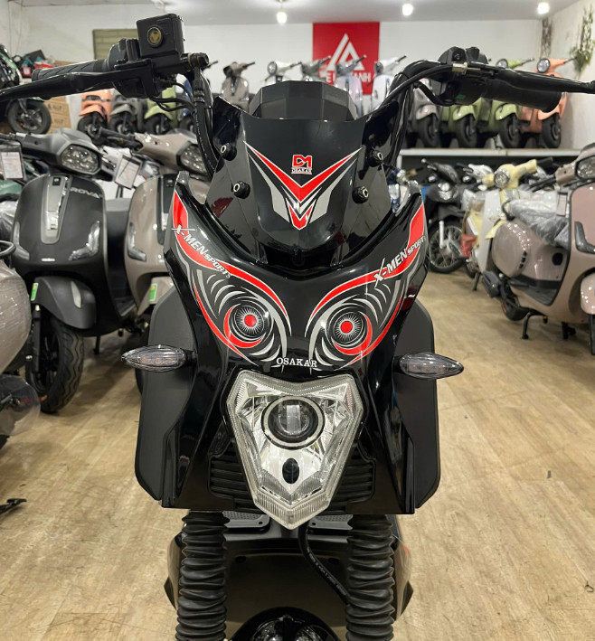 Xmen Osakar Sport gây ấn tượng mạnh với ngoại hình góc cạnh, kiểu dáng thể thao đậm chất “Xmen”. Phần đầu xe nổi bật với đèn pha LED Projector siêu sáng, kết hợp mặt nạ thiết kế hầm hố đầy mạnh mẽ. Mặt đồng hồ LED điện tử hiển thị rõ ràng các thông số như tốc độ, lượng pin và quãng đường. Yên xe hai tầng bọc da cao cấp, mang lại tư thế ngồi thoải mái cho cả người lái lẫn người ngồi sau, phù hợp với phong cách trẻ trung, năng động.