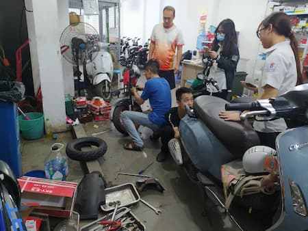 - Lan Anh có một cửa hàng đủ rộng để chăm sóc xe máy ga 50cc