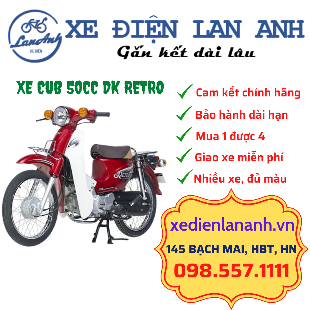 Hiện tại, xe Cub 50cc được phân phối chính thức tại XE ĐIỆN LAN ANH với chế độ bảo hành chính hãng lên đến 2 năm. Kính mời Quý khách đến thăm quan, và lựa chọn cho mình chiếc xe ưng ý nhất nhé