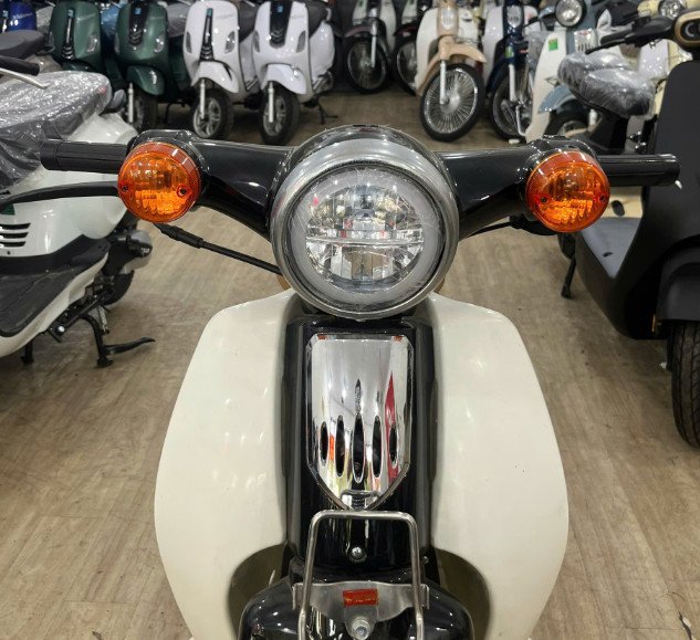 Đèn pha LED 2 tầng hiện đại: Tăng độ sáng, tiết kiệm điện, bền hơn bóng halogen truyền thống. Cụm đồng hồ analog kết hợp điện tử: Hiển thị tốc độ, báo xăng rõ ràng, dễ quan sát. Yên xe 2 tầng bọc da mềm: Thiết kế dài và rộng, ngồi thoải mái cho 2 người. Màu sắc đa dạng: Trắng kem, đỏ đô, xanh rêu, xanh ngọc, vàng be – phù hợp mọi phong cách.