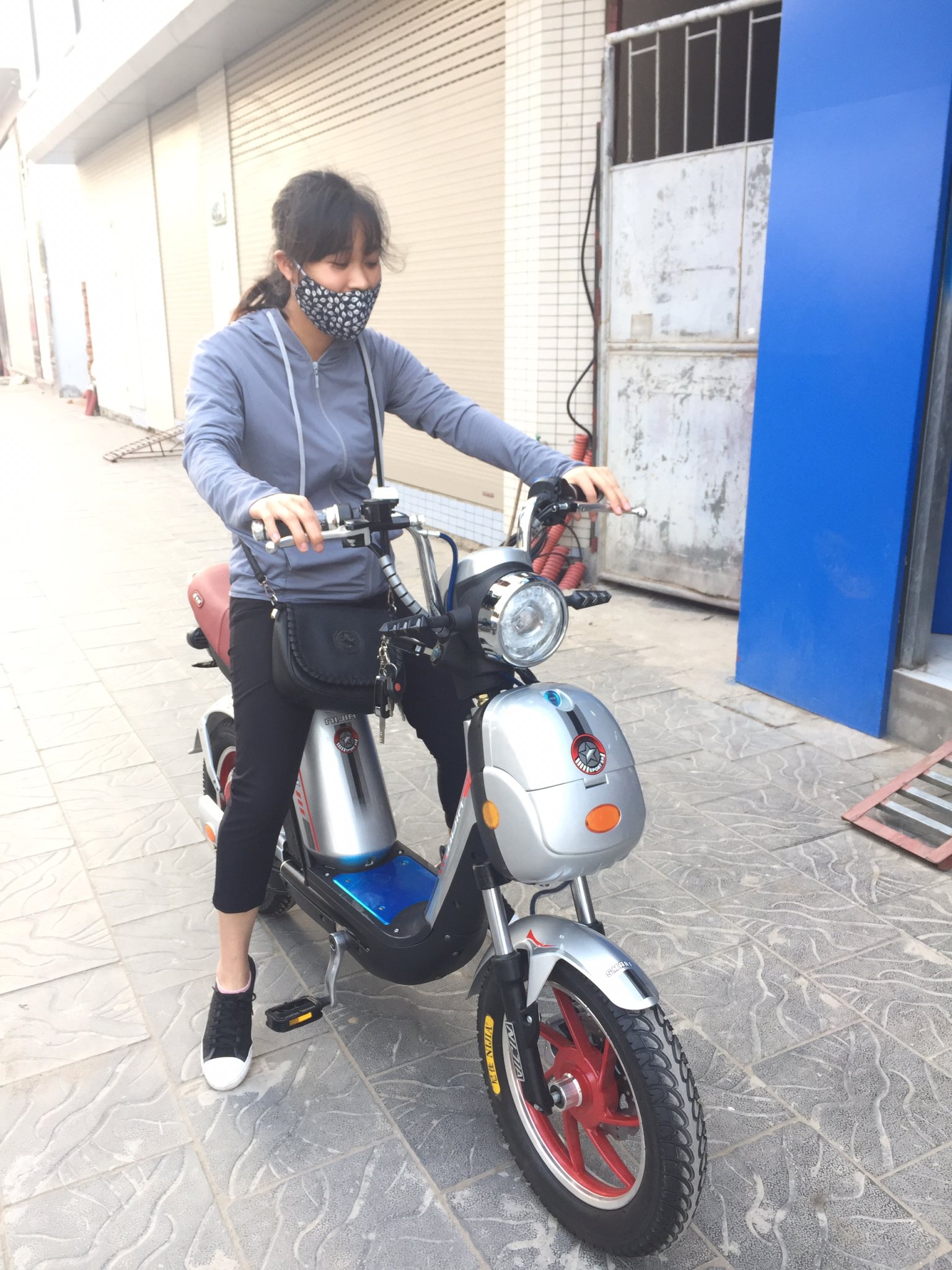 Kỹ thuật Lan Anh đang kiểm tra, chăm sóc, bảo dưỡng xe đạp điện Nijia