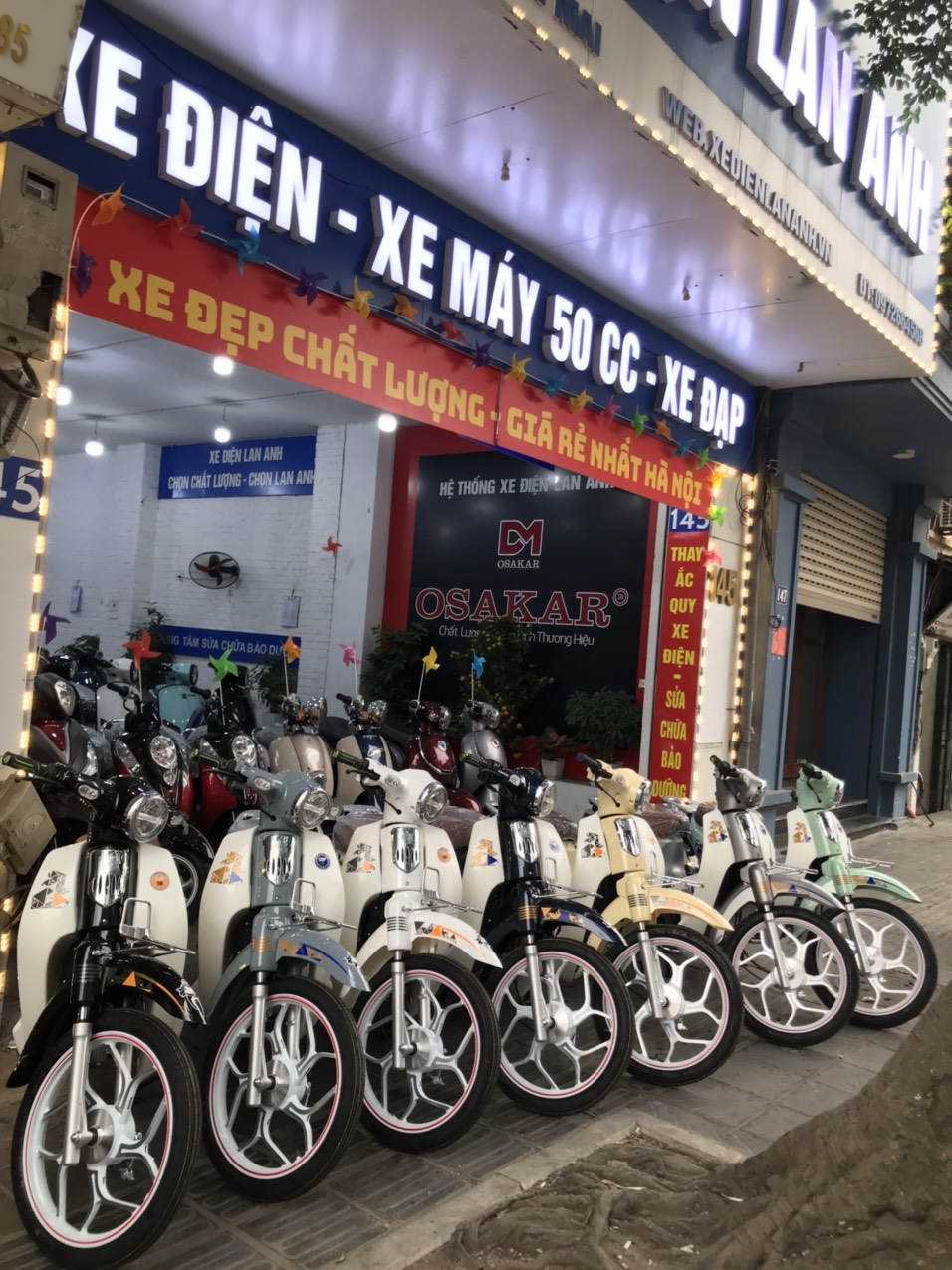 Hãy đến Xe điện Lan Anh qua địa chỉ là 145 Bạch Mai để tận mắt chiêm ngưỡng các mẫu Cub 50cc với đa dạng các sắc màu.