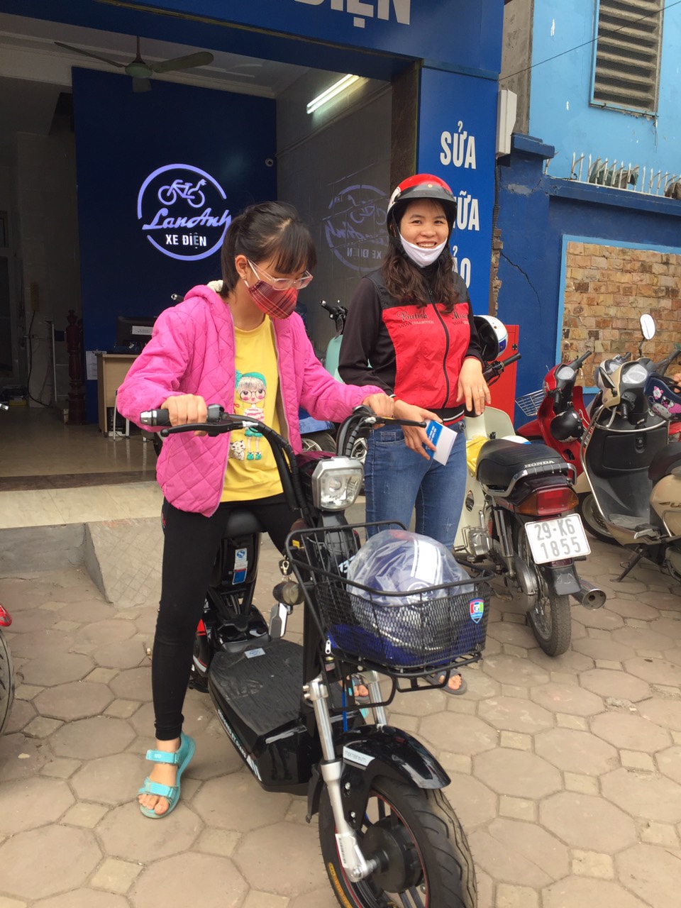 Khách hàng mua xe đạp điện M133 Aima DS tại Xe điện Lan Anh chuẩn bị ra về