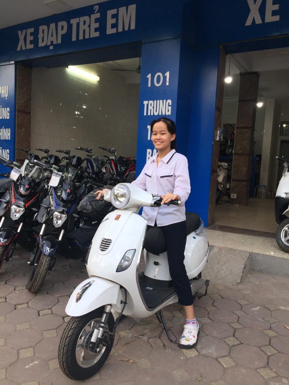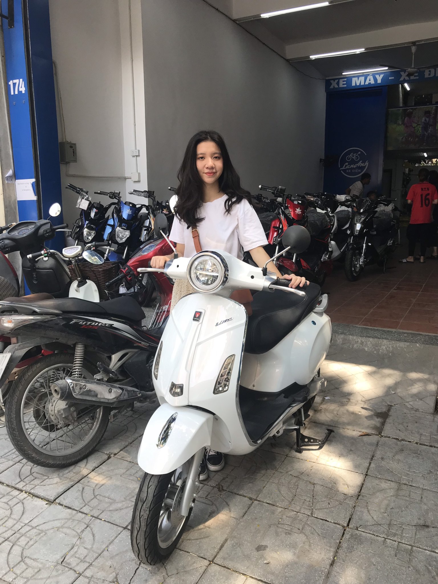 Bạn ấy đang vui sướng vì được mua xe LX150 Plus mới tại Xe điện Lan Anh
