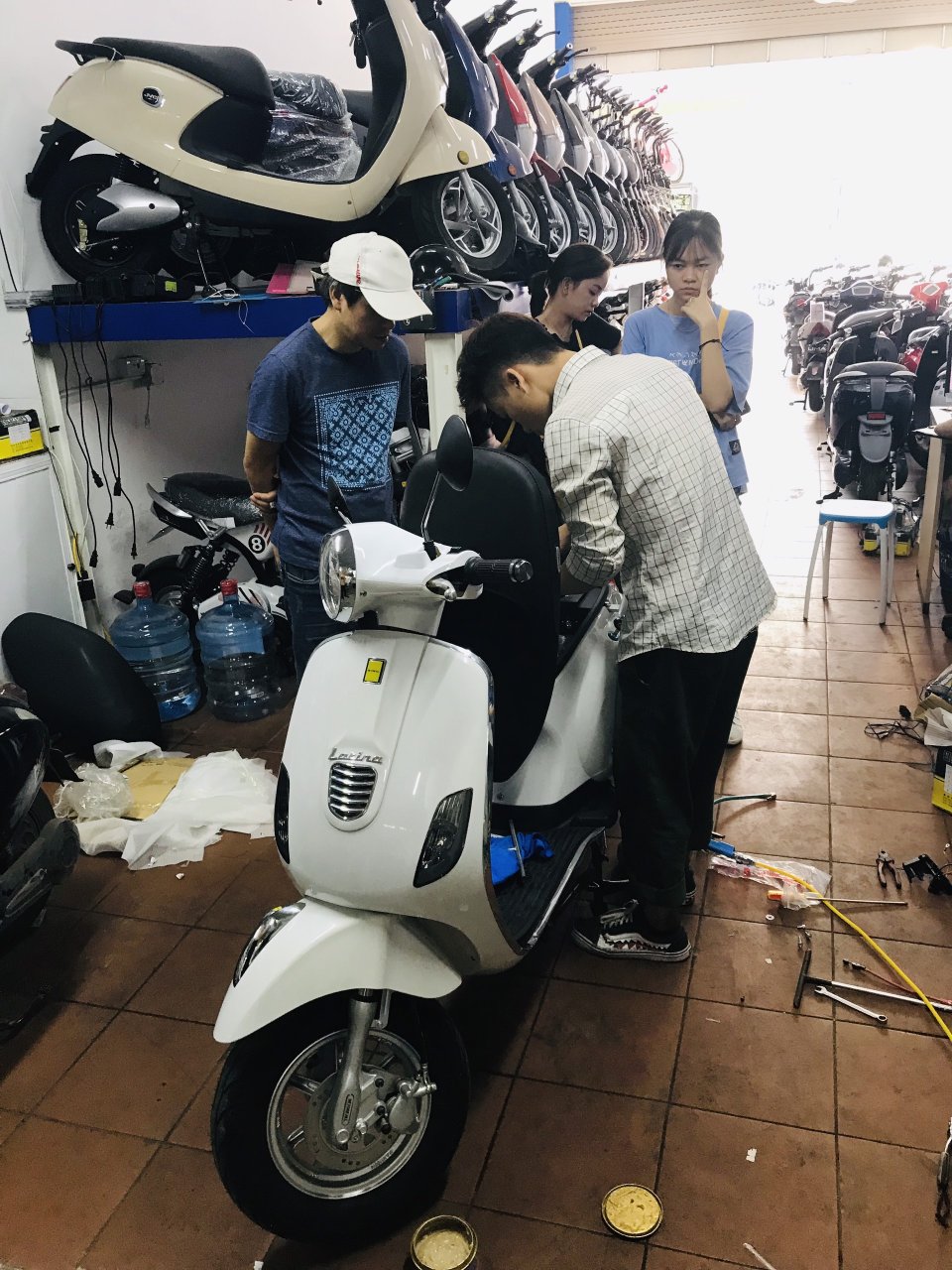 Khách hàng đến Xe điện Lan Anh chăm sóc bảo dưỡng xe đạp điện, xe máy điện