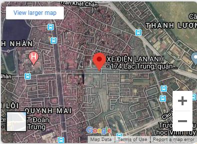 Showroom Xe điện Lan Anh nằm giữa trung tâm phố Lạc Trung, đối diện Cổng xí nghiệp xe buýt Hà Nội. Cách cầu Lạc Trung - Kim Ngưu 400m, cách đường Minh Khai 400m, rộng hơn 160m2 với đầy đủ 4 chức năng: Bán hàng - Phụ tùng - Dịch vụ - Hướng dẫn lái xe an toàn đạt tiêu chuẩn Châu Âu.