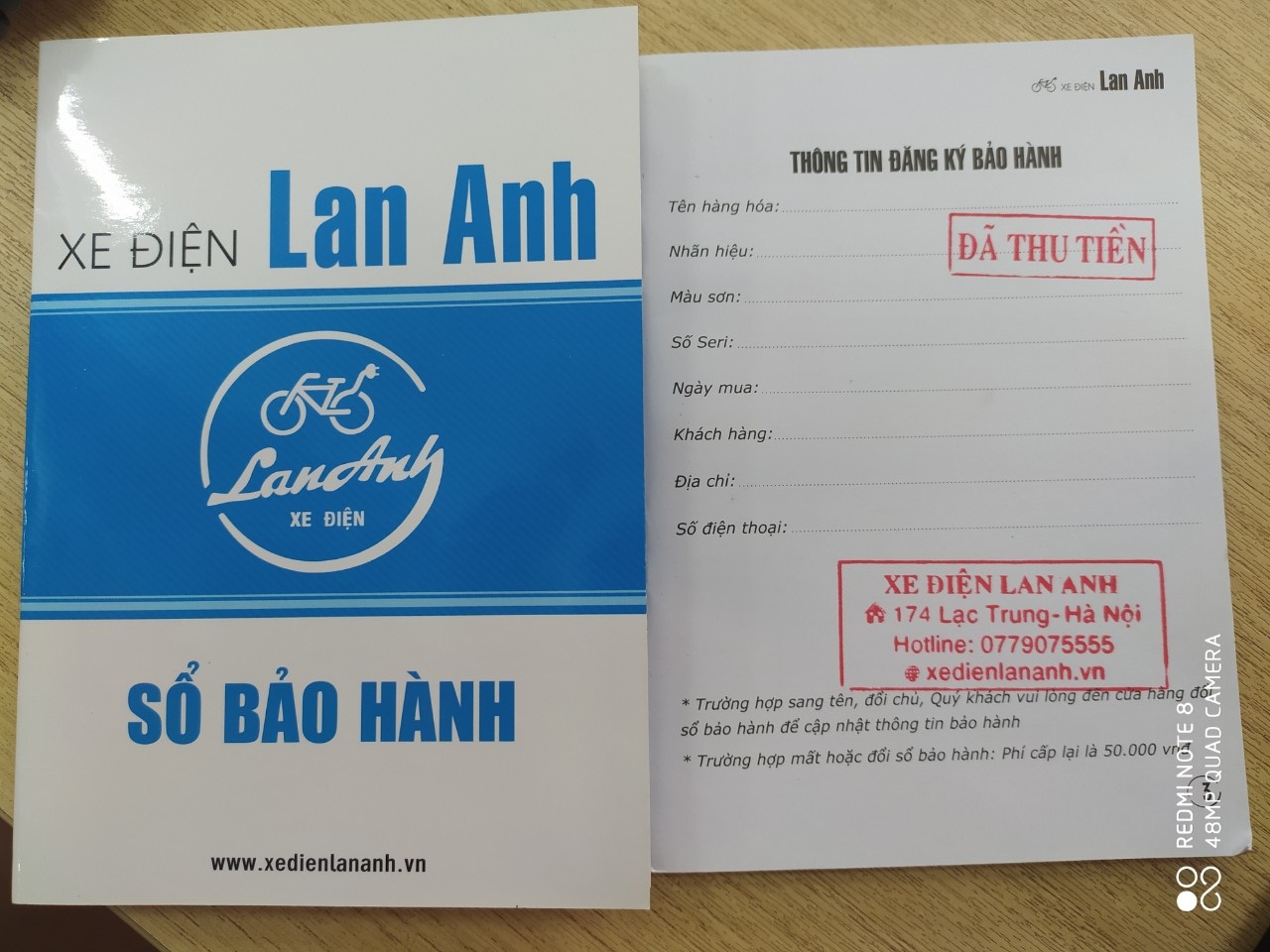 Khi thay ắc quy nhà Lan Anh thì khách hàng luôn luôn được cung cấp 1 cuốn sổ bảo hành với đầy đủ mọi thông tin của khách và cửa hàng nhằm đảm bảo quyền lợi cho khách hàng. Ngoài ra trong sổ cũng có các khuyến cáo, hướng dẫn người dùng xe điện cách chăm sóc bảo quản xe cũng như bảo vệ ắc quy.