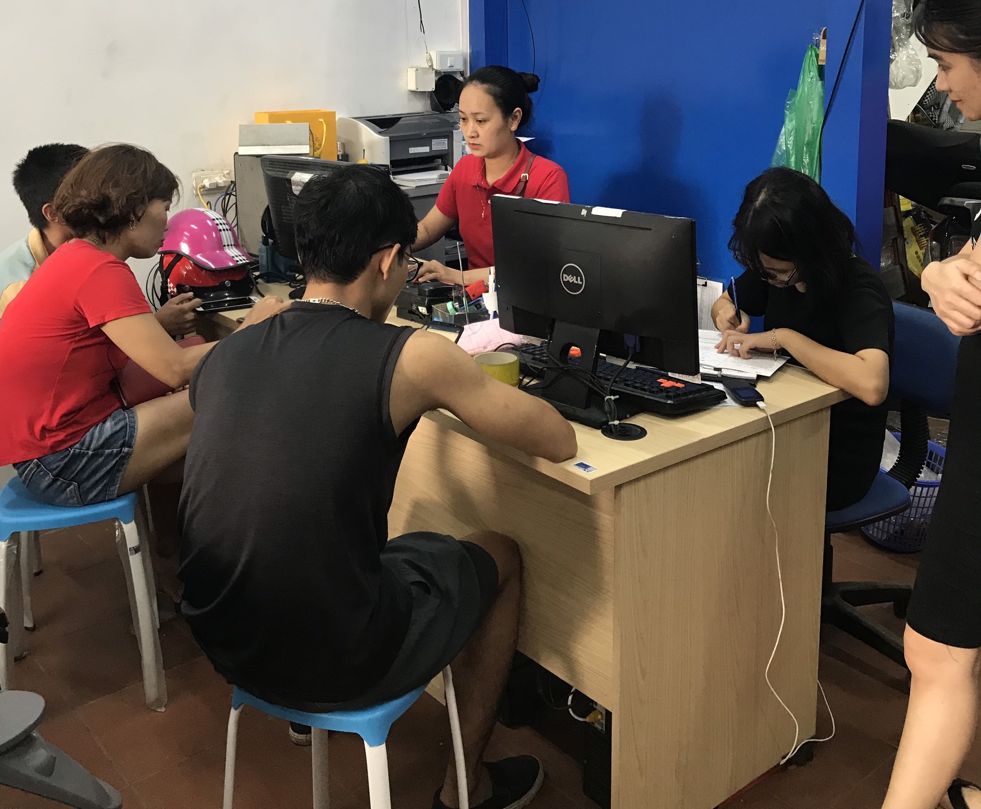 ( Ảnh khách hàng đang làm thủ tục trả góp xe đạp điện Nijia - Xe điện Lan Anh )