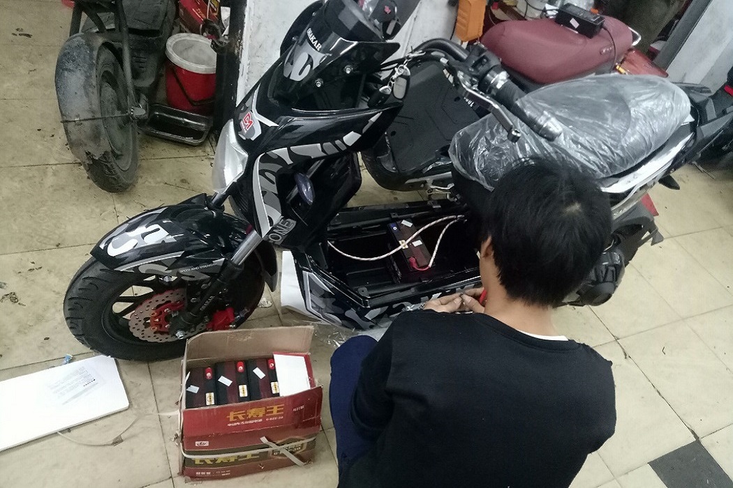 ( Ảnh kỹ thuật bên Xe điện Lan Anh đang thay ắc quy xe máy điện )