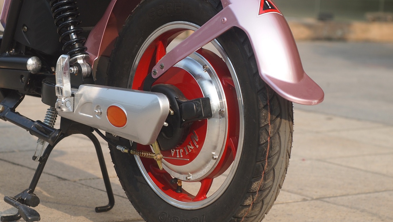 ( Vành xe của xe đạp điện Nijia S plus có màu đỏ - Xe điện Lan Anh )