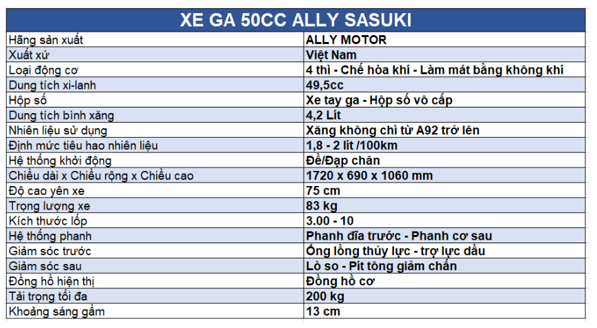 Đặt Mua Xe Ga 50cc ALLY SASUKI Ngay Hôm Nay!