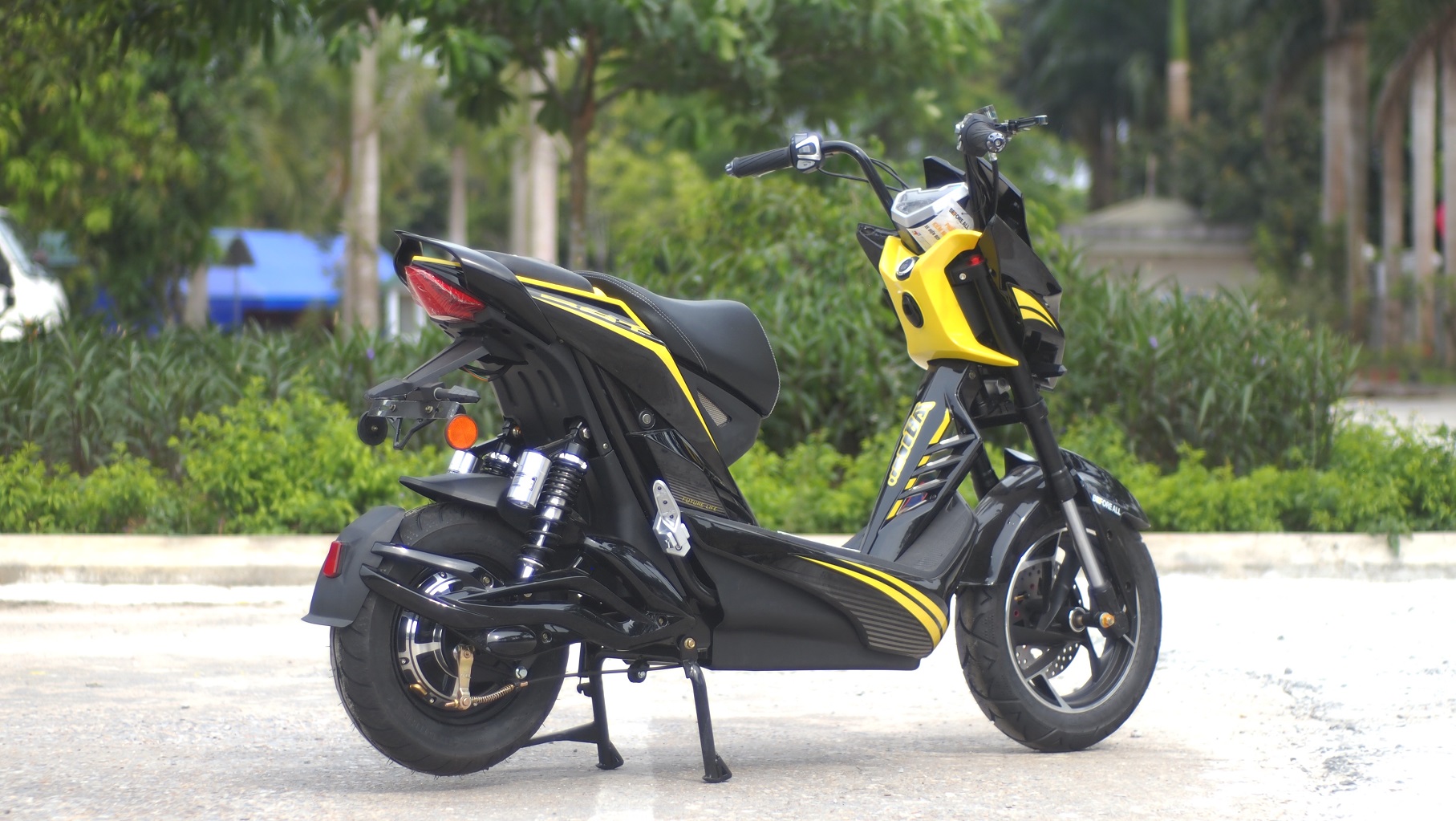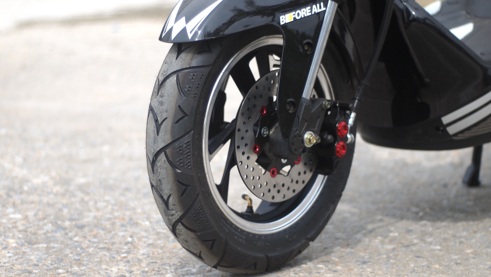 Xe được trang bị lốp không săm dày và tiết diện lớn, chống xuống hơi khi dính đinh, giữ an toàn cho người lái. Vành xe được đúc từ vật liệu cao cấp thân thiện môi trường, mang lại sự vững chãi cho đôi bánh xe.