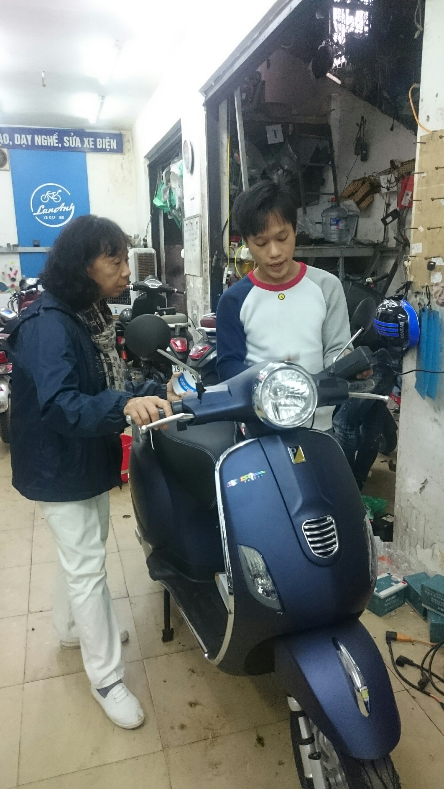 (Tư vấn sử dụng xe máy điện Vespa LX 150 tại cửa hàng)