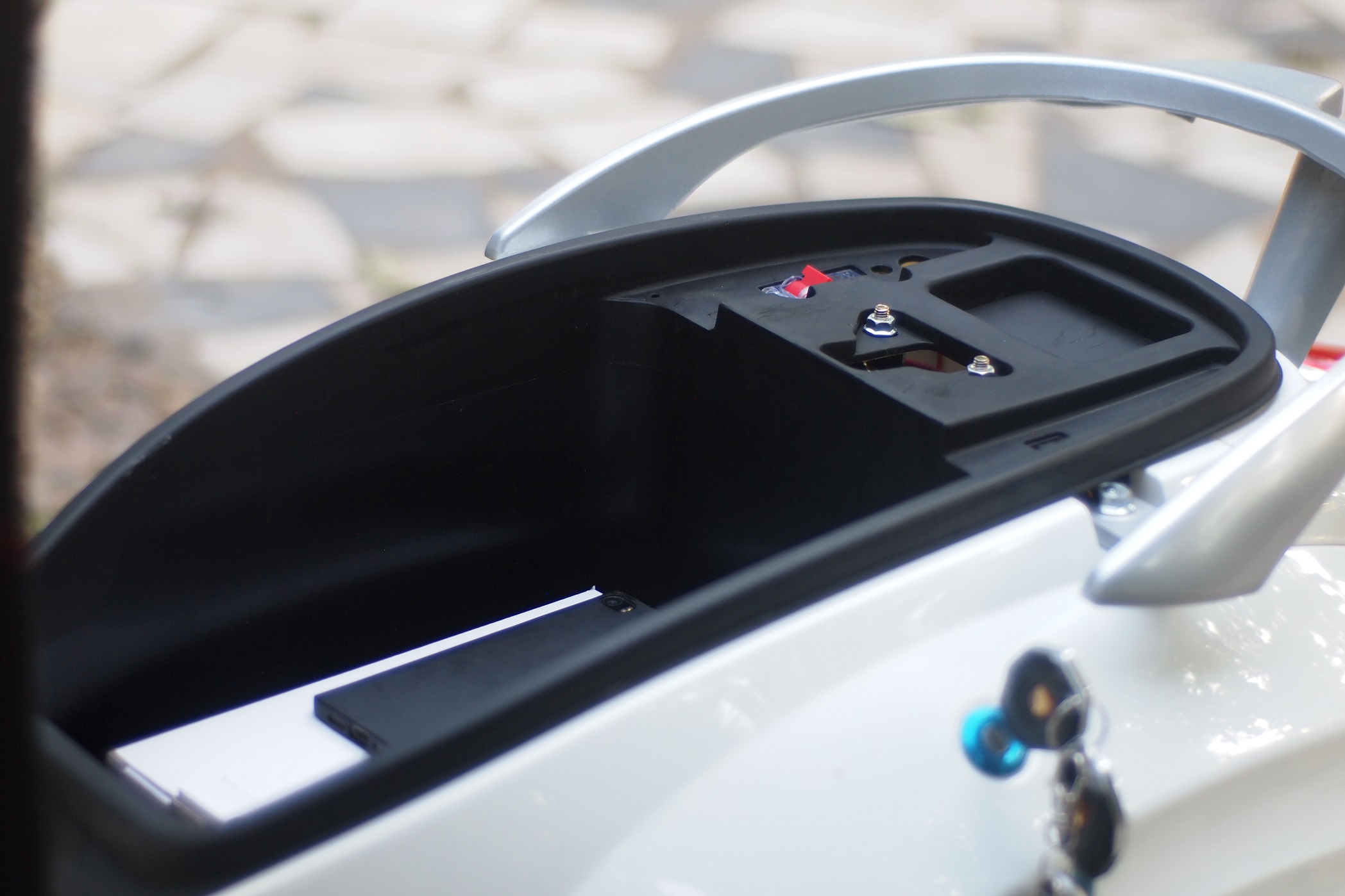 Ngoài ra xe máy điện Vespa Nispa có cốp chứa đồ rộng rãi, sàn để chân bằng phẳng rộng cùng tay sách thời trang chắc chắn, sẽ đảm bảo thỏa mãn thói quen mang theo cả thế giới của các nàng.