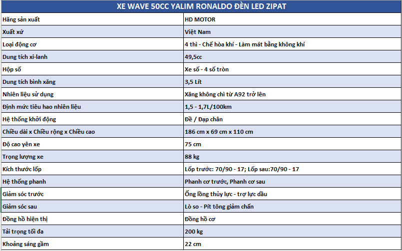 Xe wave HD Yalim Ronaldo 50cc đèn Ziphat mặt nạ độ